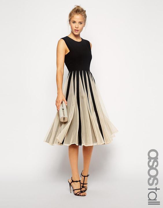 VESTIDOS, FALDAS Y PARTES DE ARRIBA: Los perfectos son los de corte imperio que marcan la cintura justo debajo del pecho y las faldas, siempre con cintura alta. Respecto a estampados siempre tenemos rayas verticales y si eliges estampados deben ser pequeños, ojo con el largo que nunca llegue a la parte más ancha de nuestras piernas o más arriba como una minifalda sólo por encima de las rodillas o más abajo, una falda larga por ejemplo, pero siempre con tacón o cuñas. Si lleváis cinturón, que no sea demasiado ancho. Huir de las faldas plisadas, con vuelo o cualquiera que tenga cortes horizontales. Las mejores opciones para faldas son las faldas lápiz y las llamadas faldas skater que resulta perfecto para las chicas con piernas cortas, ya que concentra toda la atención en la cintura. TRUCO: usar falda, medias y zapatos del mismo color siempre es perfecto porque alarga mucho más la figura.