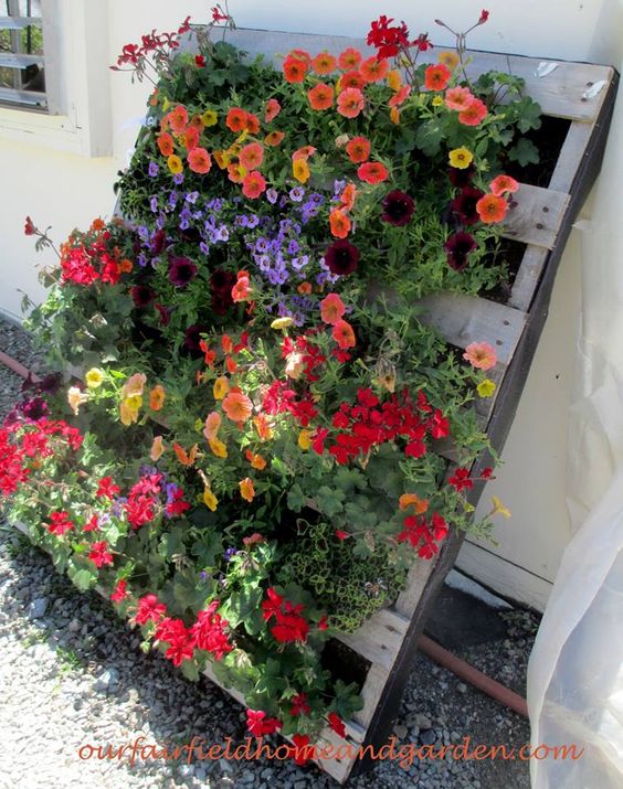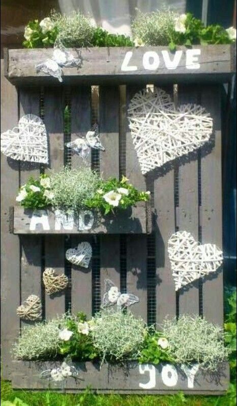 Voy a empezar por los pallets, algo que lleva ya varios años de moda y parece que se quedará bastante tiempo. Tienen muchas ventajas y son muy versátiles; se pueden dejar tal cual, envejecerlos, pintarlos, se pueden acoplar a formatos distintos y permiten muchas y variadas decoraciones usando distintas partes de ellos, sólo listones, listones y cajones, etc. Vamos a ver algunos ejemplos: