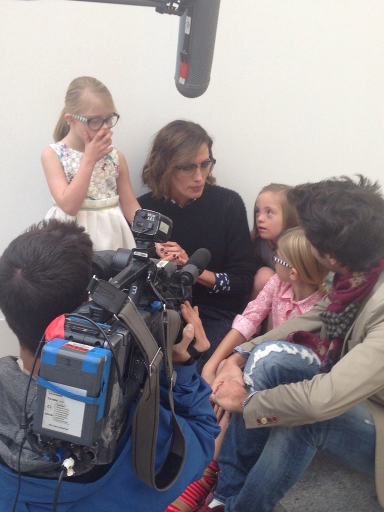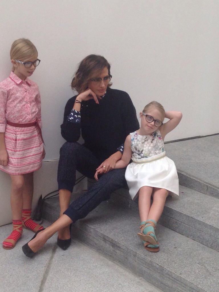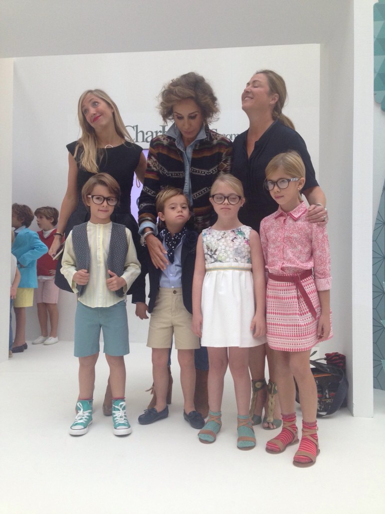 Como veis, yo también tuve mi momento foto y me gustaría que os fijarais en el logotipo de la bolsa que llevo. Es una preciosidad, os he nombrado antes esta firma, pues también me parece digna de mencionar. Es la firma N+V, os dejo enlace a su web aquí ¿¿¿quién está detrás de esta firma??? Pues son dos personas: Nieves Álvarez y Belén Villalobos. Ellas también son importantes, porque cuentan para sus desfiles con personas tan especiales y profesionales como Sofía. Me parece importante compartir con vosotros su nota de prensa, en la que podéis leer entre líneas su dedicación y dulzura, aparte del diseño de sus prendas que es realmente maravilloso. Un detalle más, las gafas que lucen las modelos, tienen también su toque solidario, la marca M+V colabora con la fundación Barraquer cuyos oftalmólogos dedican parte de sus vacaciones a cooperar en el tercer mundo. Otro detalle más para contaros: Patricia la madre de Sofía en una entrevista radiofónica contaba que los niños iban a salir todos con gafas y que Sofía saliera con las suyas, a lo que Patricia se negó en rotundo porque lo que quería era normalidad, todos con las mismas gafas y así ha sido; lo único que ha hecho es coger esas gafas del desfile y graduárselas a Sofía … ¿¿¿qué os parece??? A mí, un maravilloso y espectacular espíritu de lucha. ¡¡Ahí queda eso!!