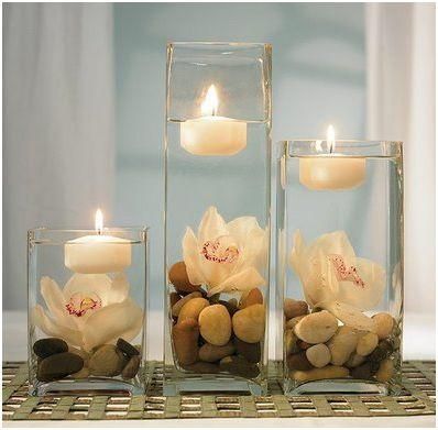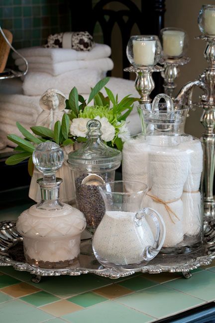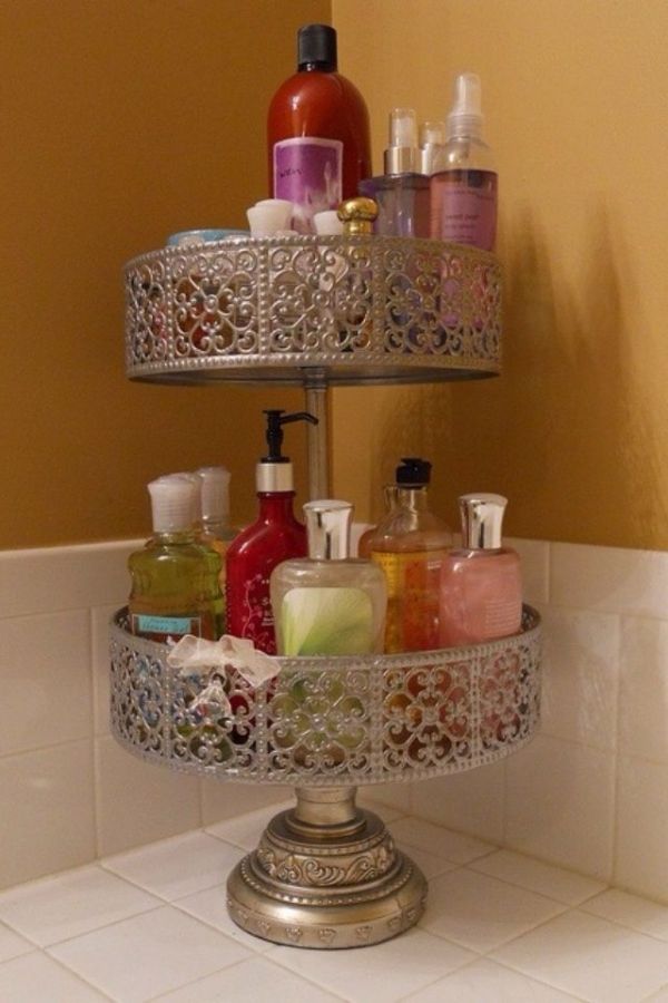 Respecto a los detalles o adornos, hay infinidad de ellos. Siempre podemos contar con jarrones, botellas, botes, etc. de cristal y meter en ellos lo que se quiera, algodones, conchas, canicas, bolas de colores, piedras, jaboncitos, colonias de muestra, lo que se quiera. Otra mención especial son las velas, que permiten además de aromatizar con olores estupendos, decorar y usar para ello un bajo plato o una bandeja y crear composiciones distintas. Otro adorno importante son estos maravillosos toques como bandejas, jaulitas, estanterías pequeñas, los tipo fruteros de toda la vida y se puede decorar con toallitas o con velas o como se quiera. Se pueden usar piedras y pintarlas con palabras divertidas y unirlas a las velas o flores y crear así un toque de gracia. Y por supuesto, siempre podemos tirar de una cestita de madera, mejor pintada y con jabones de formas divertidas, como veis en la última foto.