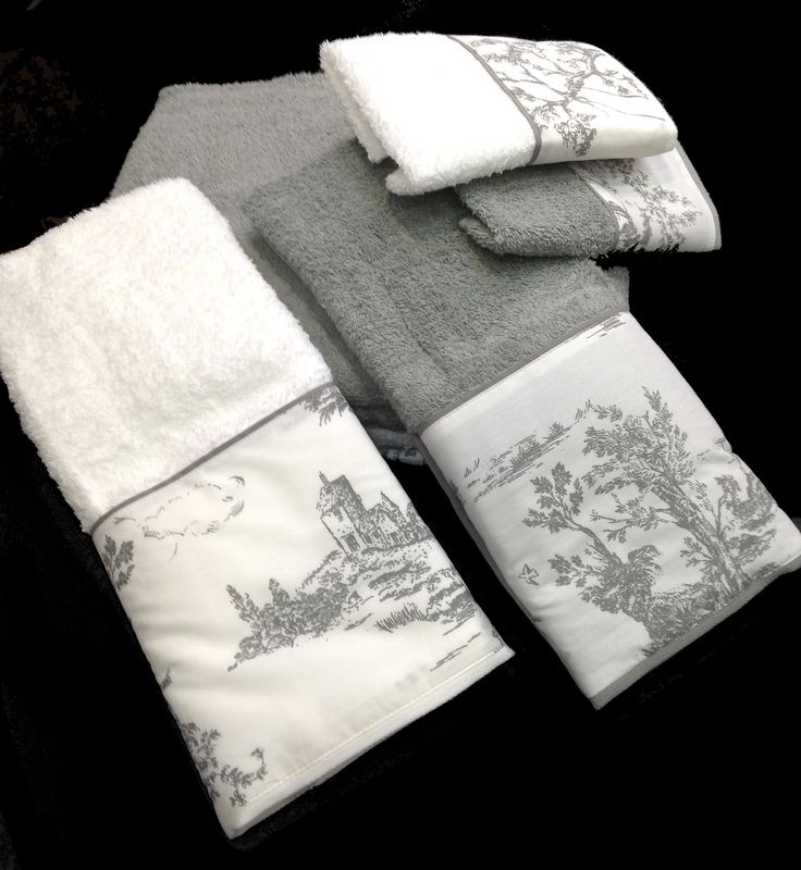 Otro apartado muy muy importante, son las toallas. Me parecen el complemento ideal de los baños, el complemento estrella y tienen infinidad de posibilidades. Se pueden poner con puntilla, sin ella, con madroños, lisas con 2 colores claro y oscuro, con tela aplicada, con las iniciales bordadas, con palabras como BATH, con cenefa bordada, en miles de colores contrastando o simplemente en blanco y negro, todo a juego. Aquí muestro algunos ejemplos: