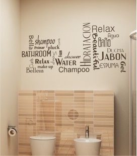 Otras ideas para decorar paredes del baño son por ejemplo usar cenefas adhesivas, hay muchos modelos y los hay especiales baño; se pueden poner o arriba o a mitad de la pared y siempre resultan muy cálidas. Otra cosa muy útil es usar vinilos; hay modelos ya creados pero también existe la posibilidad de que te fabriquen un vinilo con la frase o dibujo que más te guste y la verdad es que quedan estupendamente bien para rellenar un hueco o pared; usar espejos y combinarlos entre sí con distintos tamaños y por ejemplo, todos en plata, queda muy mono y cuco para decoración.